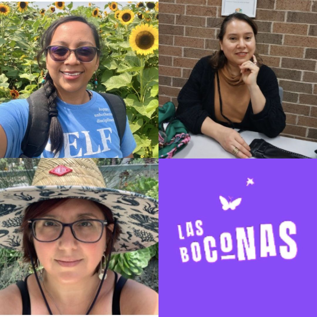 Colectiva Las Boconas are women/people from marginalized communities cultivating an intergenerational community of care and liberation in the Chicagoland area through mutual aid, raising free people, healthy gossip, joy, and rest. fanny is a formerly undocumented, Mexican immigrant womyn. As a co-founder of Las Boconas, she collaborates with her family and community to cultivate intergenerational spaces for community care, healing and liberation. As an unschooler, fanny learns alongside her kids and husband through play, curiosity and laughter. She nourishes her mind, body, and spirit by resting, reading, storytelling (healing gossip), dancing, gardening, and practicing ancestral healing. Mary Albarran is an immigrant woman from Mexico, and culturally, she is a hard-working woman but prefers to rest out of rebellion. Mary's passions are hiking, art, gardening, and walking with Pancho, her dog. Rogelia Lily Ibarra is the daughter of Mexican immigrants, a mother, writer, living at the intersection of healing, imagination, and liberation.